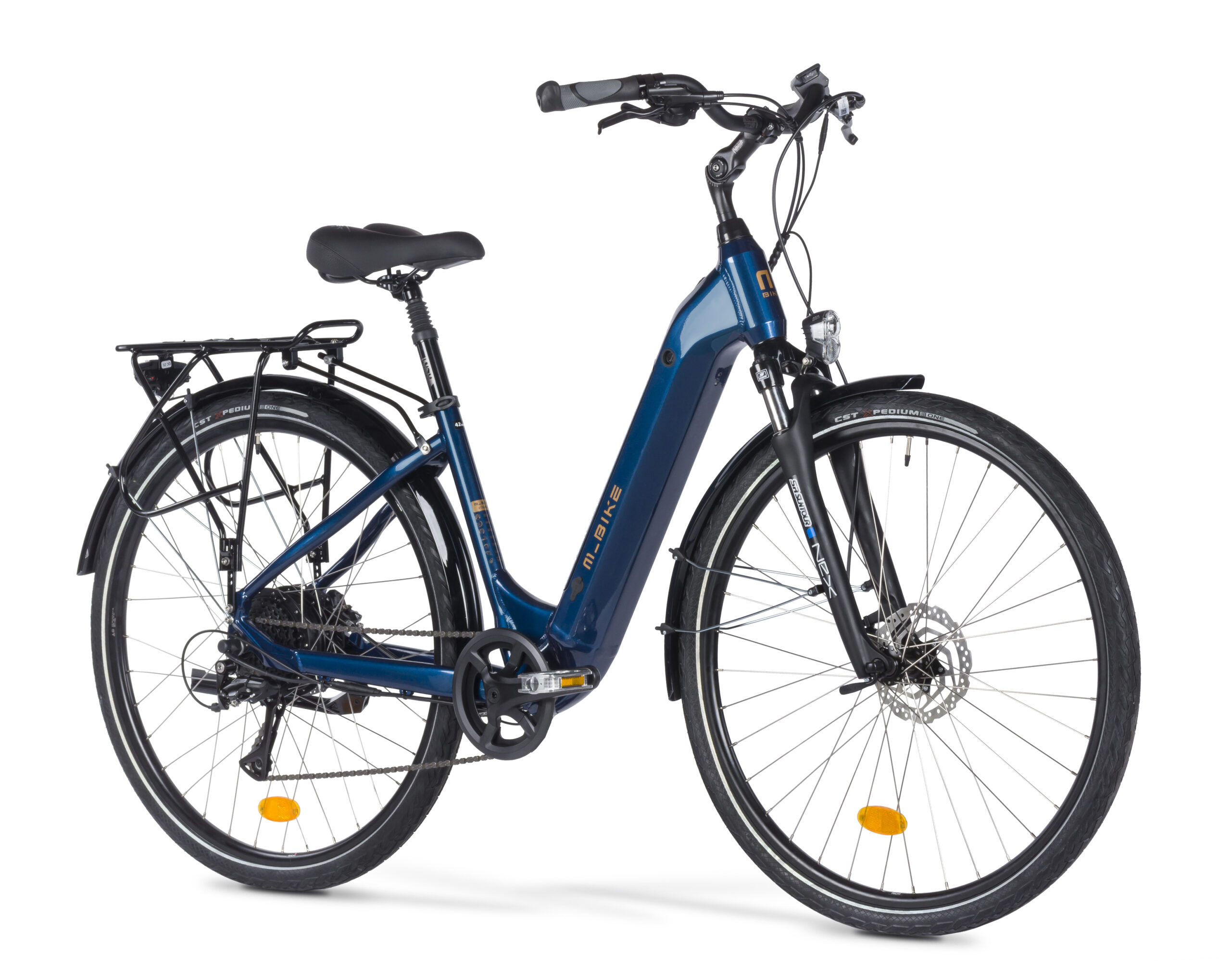 - Mocna aluminiowa rama z niskim przekrokiem i komfortową geometrią