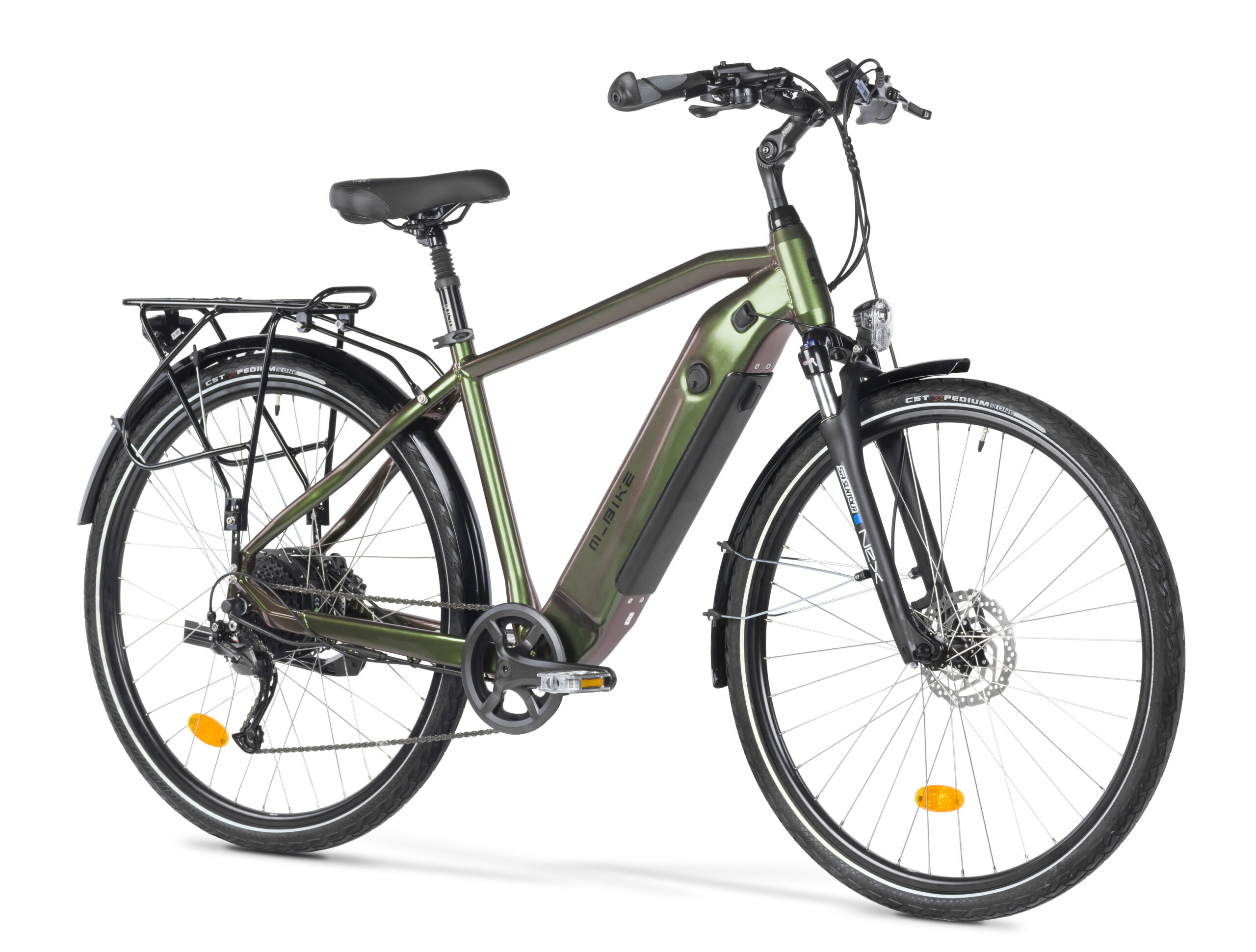 Ruszaj z nową mocą! Zapewni ją M_Bike eT.Bike 2.0. To rower elektryczny nie tylko do miasta, z bogatym wyposażeniem, które może się przydać podczas dojazdów do pracy i na wyprawie. Ten trekkingowy e-bike łączący zalety roweru turystycznego i miejskiego ma mocną aluminiową ramę dającą wygodną wyprostowaną pozycję do jazdy, z wewnętrznym prowadzeniem przewodów dla ich ochrony przed brudem i wilgocią. Solidne wsparcie zapewnia umieszczony w piaście silnik Bafang z maks. momentem obrotowym 45 Nm, zasilany wewnętrzną baterią o pojemności 630 Wh. Szeroki zakres przełożeń daje napęd 1 x 9 z przerzutką Shimano Alivio i kasetą 12-32, a komfort jazdy zwiększają przedni amortyzator SR Suntour NEX oraz regulowany mostek i amortyzowana sztyca. Bezpieczeństwo w różnych warunkach poprawiają hydrauliczne hamulce tarczowe Shimano MT200. Na wielu trasach sprawdzą się mocne koła 28″ Mach1. Ten e-bike ma dodatkowe wyposażenie, które przyda się zarówno na codziennych trasach, jak i na wyprawie. Obejmuje ono oświetlenie AXA, aluminiowy bagażnik, błotniki SKS i stopkę. M_Bike eT.Bike 2.0 pomoże Ci na drogach i bezdrożach, przekonaj się o tym!