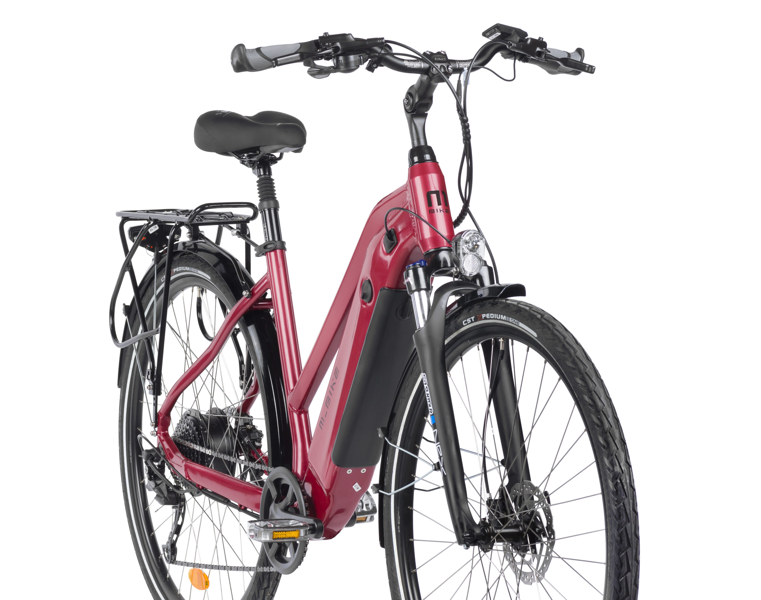 - Mocna aluminiowa rama z obniżonym przekrokiem i komfortową geometrią