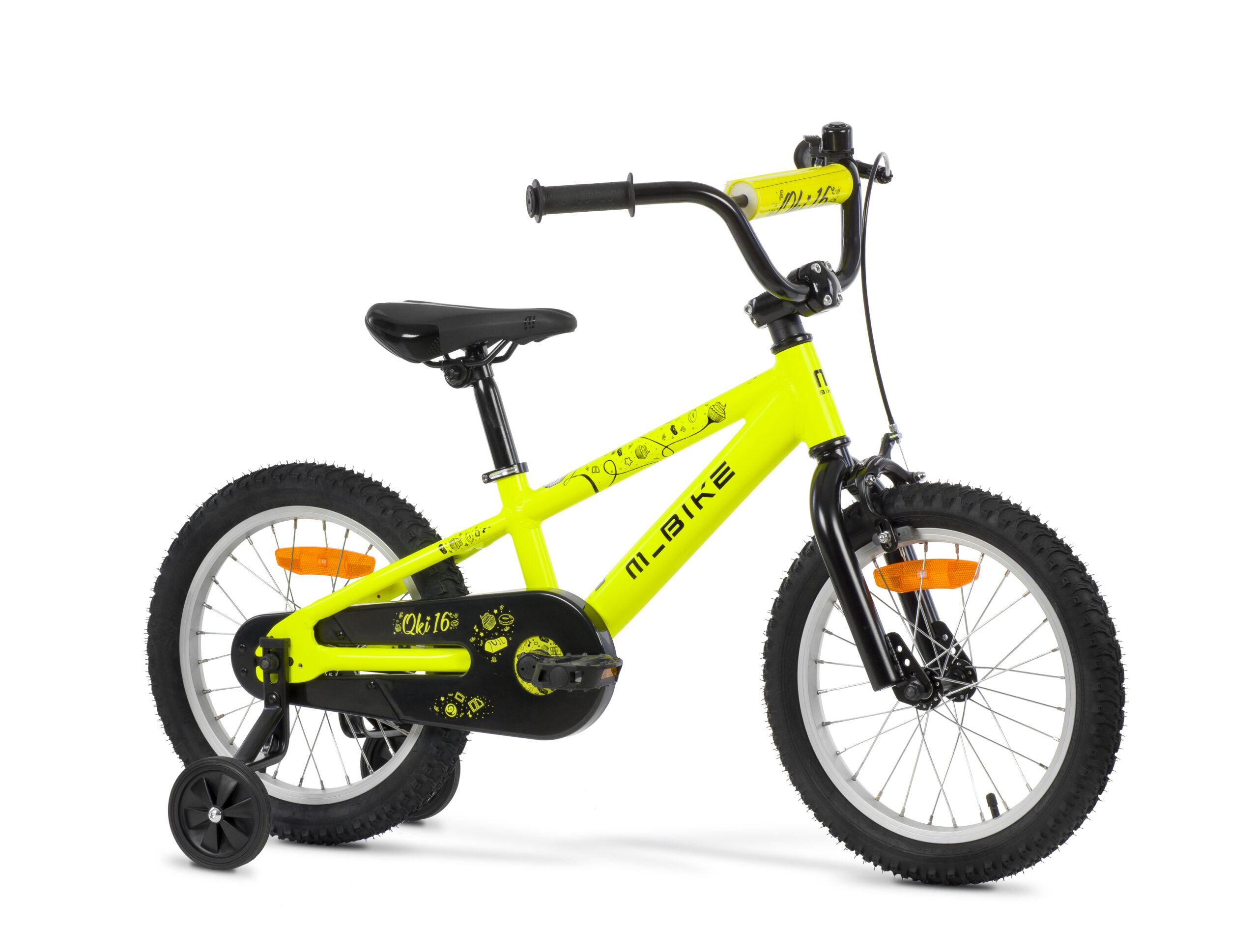 Nowy M_Bike QKI 16! Rower dziecięcy M_Bike QKI 16 wszystkim przedszkolakom zapewni wielką frajdę na podwórku, w parku oraz na pierwszych rodzinnych wycieczkach. Wiele zabaw i trudy bolesnej czasem nauki jazdy wytrzyma mocna aluminiowa rama. Cztery wersje jej malowania z odświeżoną grafiką sprawiają, że może to być zarówno rower dla chłopców, jak i rower dla dziewczynek. Bezpieczną jazdę i dobrą kontrolę nad rowerem zapewniają łatwe w obsłudze hamulce z dźwignią przedniego hamulca dopasowaną do małych dłoni oraz hamulcem nożnym. Czerpaniu z jazdy jak największej przyjemności sprzyjają wytrzymałe opony Kenda 16 x 2,125, pełna osłona łańcucha, odkręcane boczne kółka oraz nowe wygodniejsze siodełko. Rower z kołami 16″ jest przewidziany dla dzieci o wzroście od ok. 90 cm wzrostu. Wspólnie z dzieckiem odkrywaj radość z jazdy!