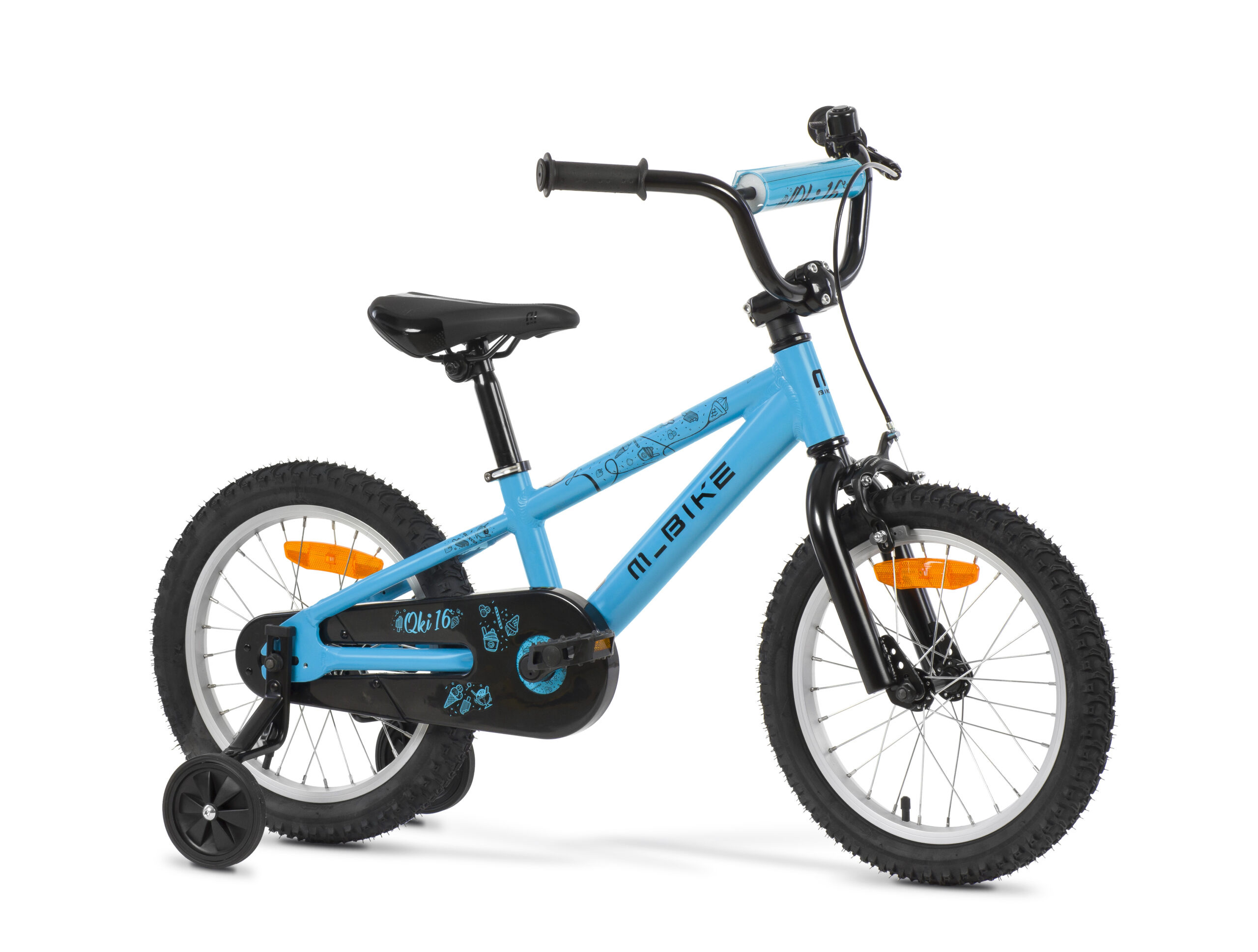 Nowy M_Bike QKI 16! Rower dziecięcy M_Bike QKI 16 wszystkim przedszkolakom zapewni wielką frajdę na podwórku, w parku oraz na pierwszych rodzinnych wycieczkach. Wiele zabaw i trudy bolesnej czasem nauki jazdy wytrzyma mocna aluminiowa rama. Cztery wersje jej malowania z odświeżoną grafiką sprawiają, że może to być zarówno rower dla chłopców, jak i rower dla dziewczynek. Bezpieczną jazdę i dobrą kontrolę nad rowerem zapewniają łatwe w obsłudze hamulce z dźwignią przedniego hamulca dopasowaną do małych dłoni oraz hamulcem nożnym. Czerpaniu z jazdy jak największej przyjemności sprzyjają wytrzymałe opony Kenda 16 x 2,125, pełna osłona łańcucha, odkręcane boczne kółka oraz nowe wygodniejsze siodełko. Rower z kołami 16″ jest przewidziany dla dzieci o wzroście od ok. 90 cm wzrostu. Wspólnie z dzieckiem odkrywaj radość z jazdy!