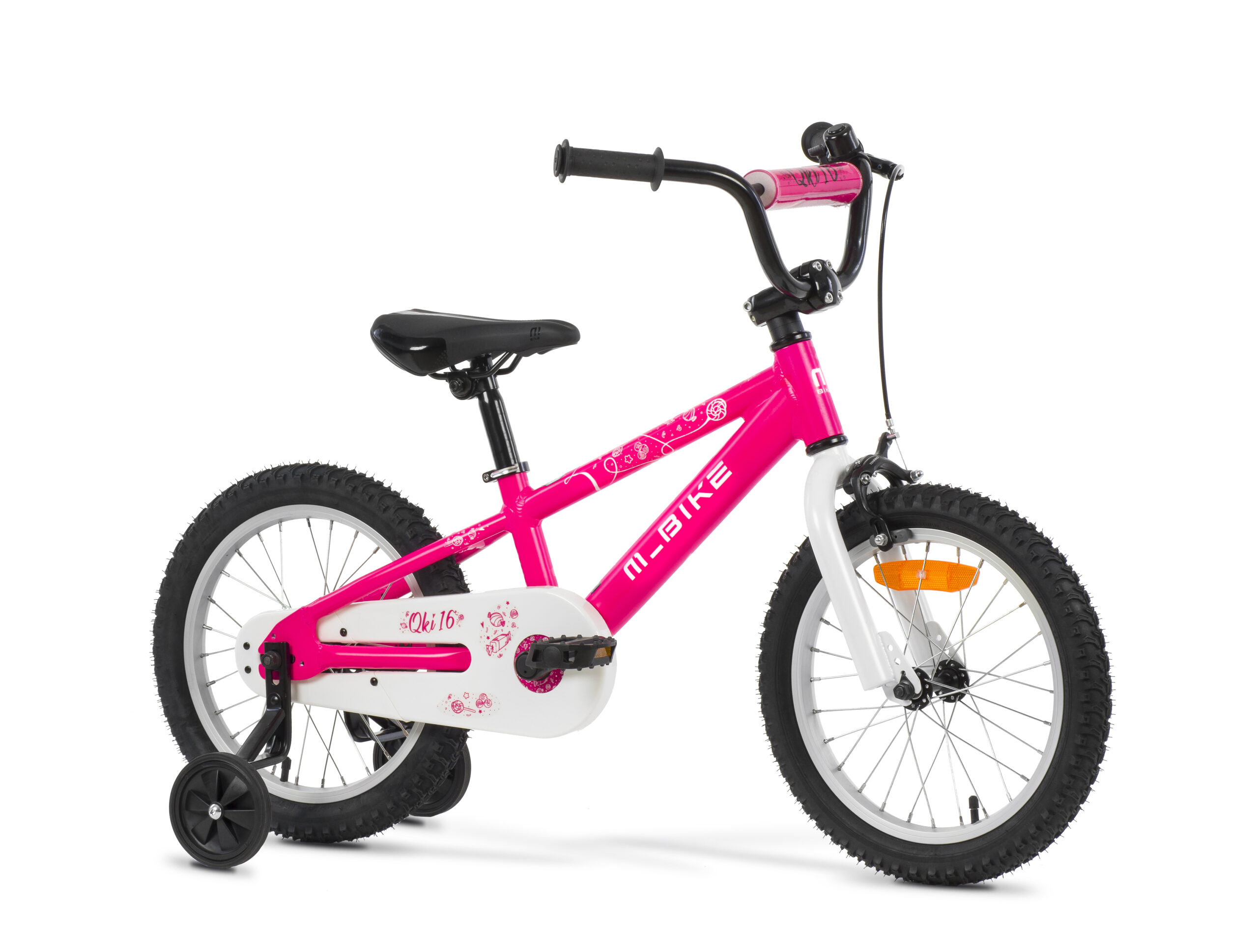Nowy M_Bike QKI 16! Rower dziecięcy M_Bike QKI 16 wszystkim przedszkolakom zapewni wielką frajdę na podwórku, w parku oraz na pierwszych rodzinnych wycieczkach. Wiele zabaw i trudy bolesnej czasem nauki jazdy wytrzyma mocna aluminiowa rama. Cztery wersje jej malowania z odświeżoną grafiką sprawiają, że może to być zarówno rower dla chłopców, jak i rower dla dziewczynek. Bezpieczną jazdę i dobrą kontrolę nad rowerem zapewniają łatwe w obsłudze hamulce z dźwignią przedniego hamulca dopasowaną do małych dłoni oraz hamulcem nożnym. Czerpaniu z jazdy jak największej przyjemności sprzyjają wytrzymałe opony Kenda 16 x 2,125, pełna osłona łańcucha, odkręcane boczne kółka oraz nowe wygodniejsze siodełko. Rower z kołami 16″ jest przewidziany dla dzieci o wzroście od ok. 90 cm wzrostu. Wspólnie z dzieckiem odkrywaj radość z jazdy!