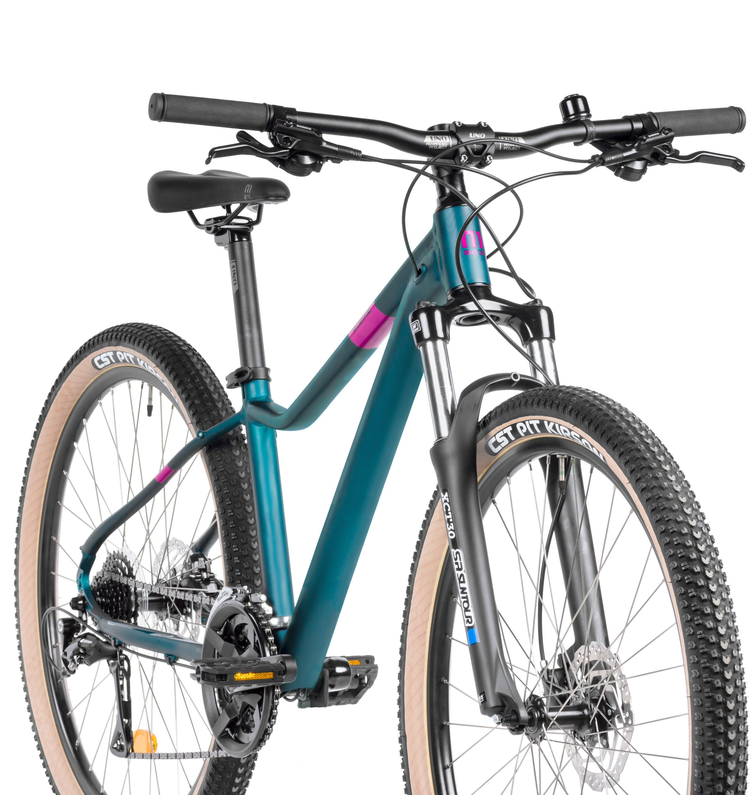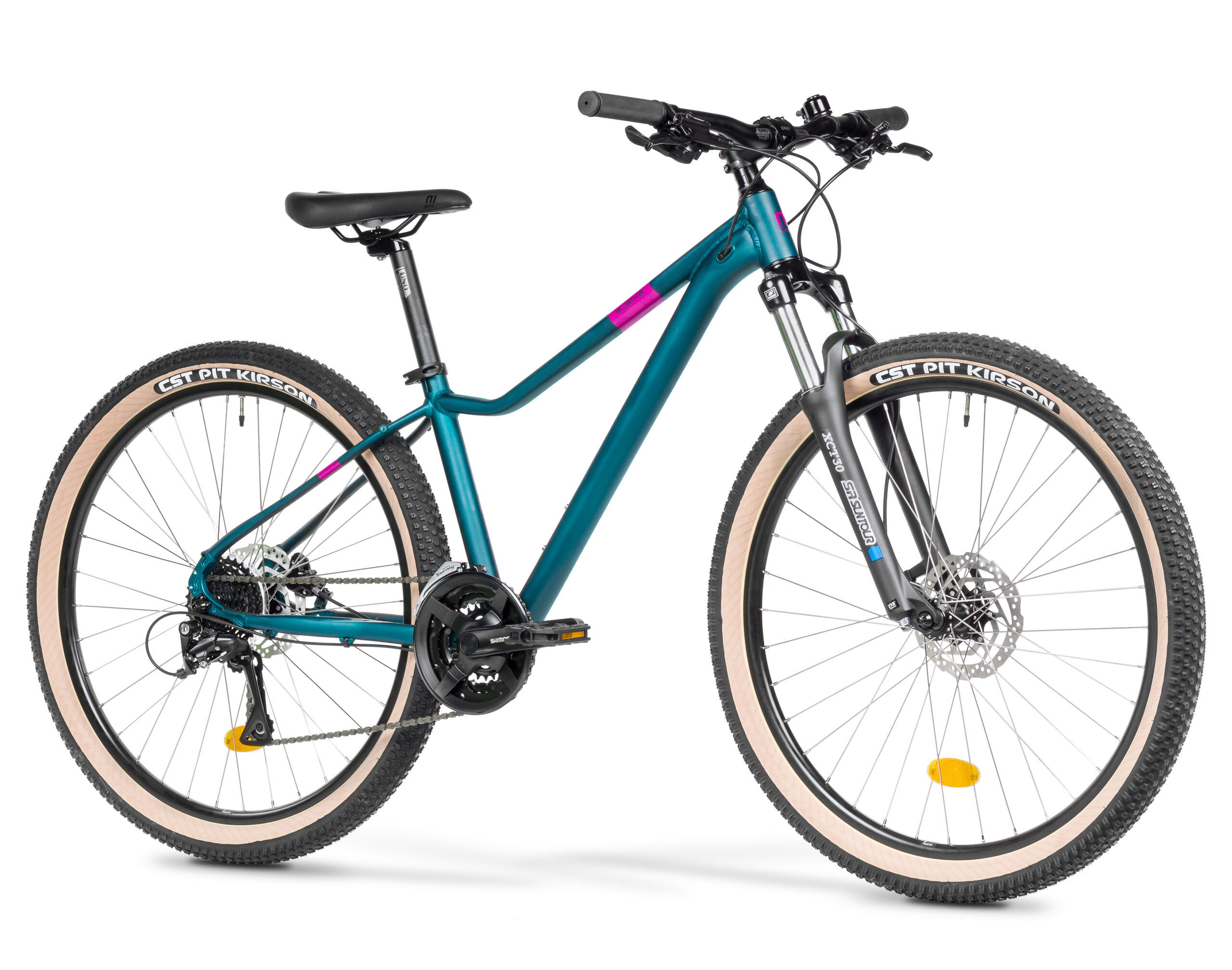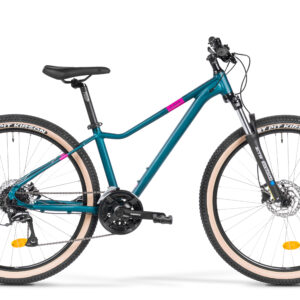 Ruszaj w teren z rowerem M_Bike TIN 27.5 15-D! To rower górski, który pozwoli odkryć piękno jazdy w terenie. Świetnie sprawdzi się jako rower MTB dla młodzieży. Z kołami 27,5″ łączy dobre przyspieszenie z łatwym przetaczaniem się przez przeszkody i zwinną jazdą. Komfortową jazdę w terenie ułatwia amortyzator SR Suntour o skoku 100 mm. Sercem tego roweru MTB jest nowa aluminiowa rama o udoskonalonej komfortowej geometrii, która sprawdzi się zarówno wśród mężczyzn, jak i kobiet. Szeroki zakres przełożeń zapewnia napęd Shimano 3 x 8, a możliwość montażu błotników, bagażnika i stopki pozwala dopasować M_Bike TIN do własnych potrzeb. Bezpieczeństwo w każdych warunkach zwiększają hydrauliczne hamulce tarczowe Shimano. To niezwykle uniwersalny hardtail, odpowiedni dla mężczyzn i kobiet, który świetnie sprawdzi się jako rower dla nastolatków czy jako pierwszy „dorosły” rower. Wybierz odpowiedni dla siebie rozmiar i poczuj, jak wielką frajdę daje jazda w terenie!